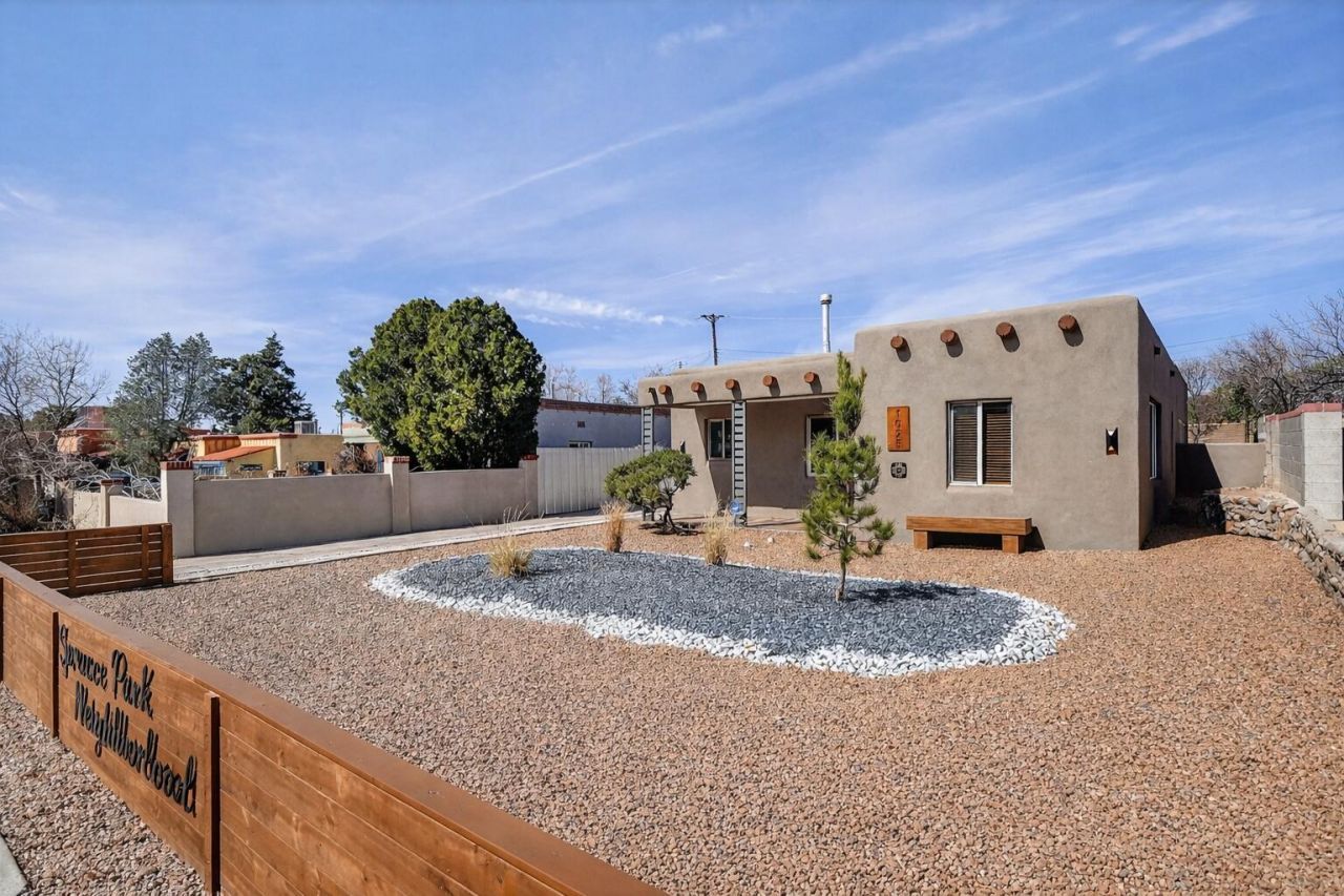 Spuce Park! Come see this beautifully updated and light-filled home in one of Albuquerque's most treasured neighborhoods. This nearly 100-year-old vintage home has been thoughtfully updated from the ground up - blending timeless character with modern convenience and finishes. Notable updates include hand-built custom cabinets, quartz counters and stainless appliances, plus central heat & refrigerated a/c. Updated thermal pane windows throughout, recent TPO roof and new synthetic (weatherproof) stucco. Professionally xeriscaped front and rear. Located at the base of historic Pill Hill and in easy walking distance to medical corridors, UNM campus, hospitals, museums and dining. This is a rare opportunity to own a fully modernized home in one of Albuquerque's most storied neighborhoods.