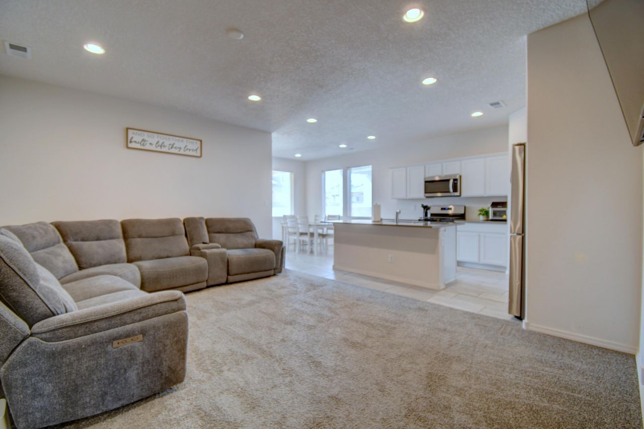 Welcome Home. This 2023 home features 3 bedrooms, 2 bathrooms in 1430 square feet of living space. Spacious kitchen with island and pantry is open into living room and is great for entertaining family or friends. Large primary bedroom adjoins bathroom with large walk-in shower and walk-in closet. Guest bedrooms share a full bathroom off of the hallway. Large utility room for all of your laundry and storage needs. Come home and enjoy your weekends and evenings with little to no maintenance yard with turf and xeriscape. Indoors enjoy you refrigerated air. Two car garage with extra space for storge or a deep freezer.