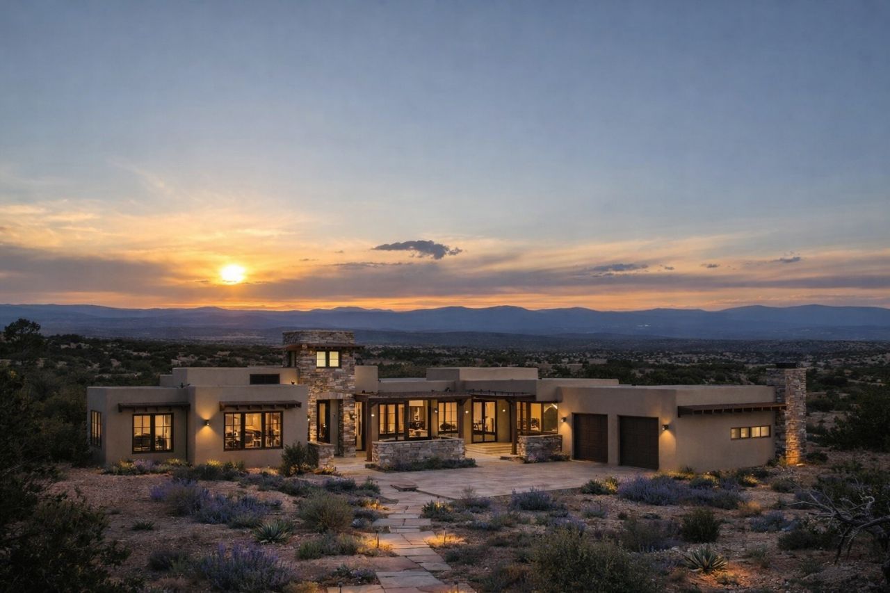 Set on 2.5 acres in Santa Fe's desirable northwest corridor, this is a true build-to-suit opportunity offered as a complete home-and-land package. The lot is not available separately. This is about creating something intentional from the ground up in a setting that offers space, privacy, and easy access to town. We've partnered with Sangre de Cristo Designs, one of Santa Fe's respected design-build firms, to bring this opportunity to life. The current concept envisions approximately 3,312 square feet of thoughtfully designed living space, with flexibility to adjust the size, layout, and finishes to reflect your vision and lifestyle. The plan serves as a starting point. Refine the footprint. Adjust the flow. Elevate the level of finish. Whether your style leans toward classic Santa Fe architecture with plaster walls, vigas, and warmth, or a more contemporary interpretation that captures natural light and the surrounding landscape, the process is collaborative from the first design meeting through completion. From architectural planning and material selections to on-site project management, the experience is structured, transparent, and guided. Estimated build time is approximately 12 months, subject to county approvals. Owner/Broker. Lot Price not included (Lot MLS# 202504237). Images are AI renderings.