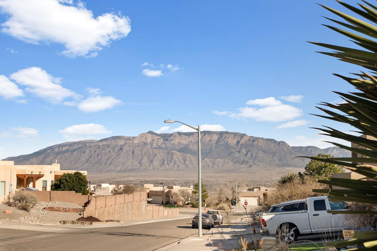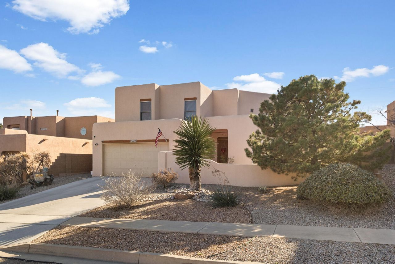 2-story semi-custom Tiffany Home on a spacious .18-acre lot with a beautifully designed 2-tier yard. Flexible layout offers 3 bedrooms plus a flex room for a possible 4th or office. Light-filled kitchen opens to the living area with a kiva fireplace. Enjoy refrigerated air, finished garage, and a private balcony with stunning mountain views. 2,275 sq ft. Near Intel, shopping, dining, and medical.10min. from Rio Rancho VA metro clinic. Assumable VA loan at 3.25%.