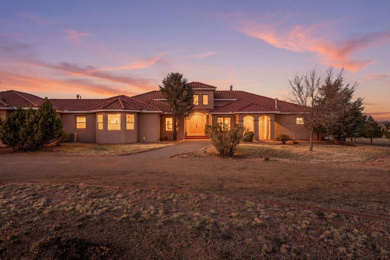 Set upon 5 acres in beautiful Edgewood, this luxury equestrian-property is a rare find!! Designed for both comfort & functionality, this property blends modern upgrades with wide-open New Mexico views. Step inside to soaring ceilings, new laminate flooring, and plush new carpet throughout. The open floorplan offers an airy living space ideal for entertaining, while the dedicated office--with its own exterior access--makes working from home a breeze. The kitchen features a new cooktop, new dishwasher, custom-built pantry shelving, & flows seamlessly into the main living areas featuring built-in speakers for surround sound enjoyment. The primary suite boasts a spacious walk-in closet enhanced with custom built-ins, & the home is equipped with a new water softener & filtration system