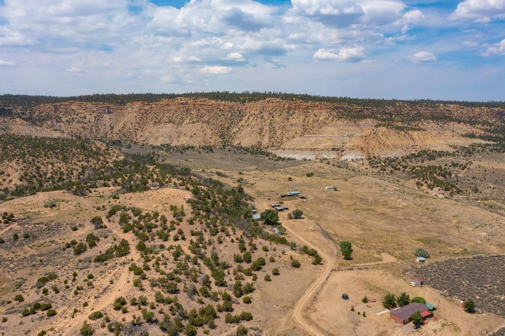 This versatile 81 acre property nestled in a peaceful canyon surrounded by grand mesas, abuts a 'hike-in' area of the Santa Fe National Forest to the west and BLM land to the north! Plenty of potential for horses, hunting, livestock and more. Watch Elk graze right outside your front porch while enjoying magnificent sunrises and sunsets. There is source of gravel and petrified wood is prevalent. Outbuildings include a shop/garage/storage 20'W x 40'D x 12'H (approx), a detached two level cellar/storage building, a tack room, a horse corral plus shaded area and more. The house has a propane line running to it.