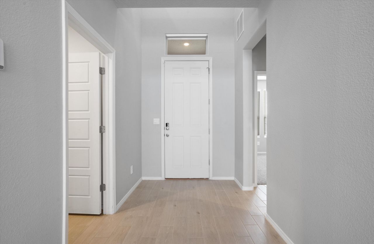 Welcome to this rare 5-bedroom, 3-bath home designed for modern living. Open layout flows into a chef's kitchen with gas cooktop, large island, and walk-in pantry. First-floor primary suite features a spa-style bath with dual vanities and oversized shower, plus a guest bedroom and bath downstairs. Upstairs offers a spacious loft/family room and three bedrooms. 3-car tandem garage with EV outlet. Custom built-ins provide extra storage. 10.6kW solar system (seller to pay off at closing) covers most usage. Water softener included. Hot tub electric ready. Landscaped backyard with water feature.