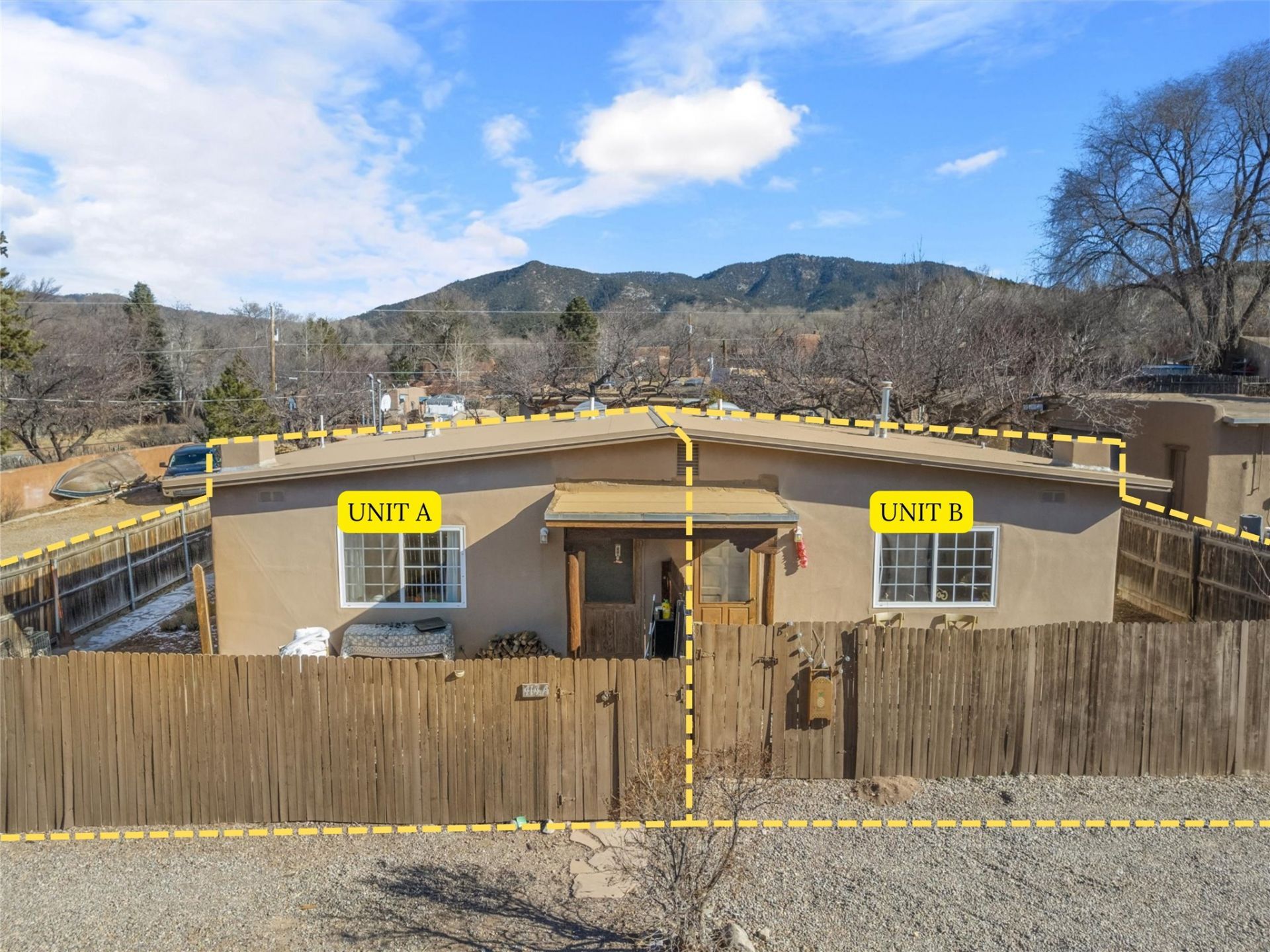 A unique duplex offering a fantastic opportunity for both homeowners and investors. This property features two mirroring apartments, each thoughtfully designed with 2 bedrooms, 1 bath, a laundry closet with hookups, and an open-concept living, dining, and kitchen area. The cozy kiva fireplaces add a touch of Southwestern charm, while the front portals and enclosed yards provide inviting outdoor spaces for relaxation or entertainment. Each kitchen is equipped with essential appliances, making the units move-in ready or perfect for rental opportunities. Live in one unit and rent out the other to generate income while enjoying the convenience of having tenants close by. Adding to the property's value is an oversized garage with stunning vigas, offering ample room for storage, workspace, or potential expansion. The expansive lot provides parking for over a dozen vehicles, making it ideal for those who need extra space or have plans for future development. Located in the heart of Santa Fe, this duplex combines comfort, functionality, and investment potential in one incredible package. Don't miss out on this rare opportunity?schedule your private showing today!