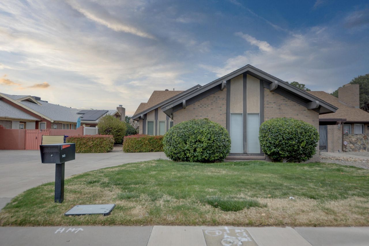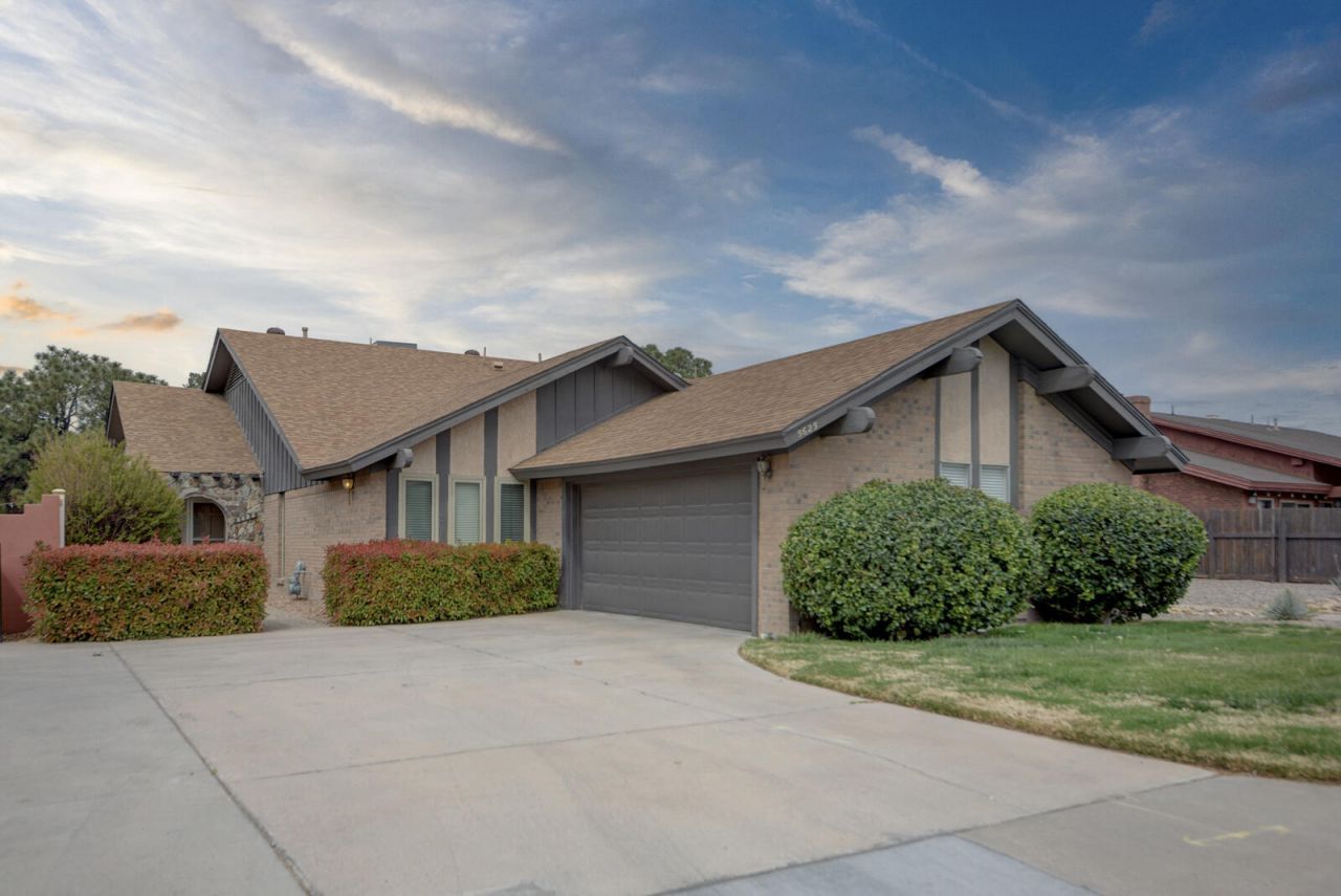 Located in a quiet enclave just north of the Arroyo del Oso Golf Course, this flexible home offers 2 bedrooms + office or 3 bedrooms, all with walk-in closets. The great room features cathedral ceilings and a custom fireplace. Primary suite opens to a private atrium. Kitchen includes a large pantry, and all appliances convey. Enjoy abundant storage, including attic space above the garage. Oversized garage with work area. Recent updates include newer roof, heating, and A/C. Pella windows throughout (except primary slider). Covered patio with roll-up awnings and gas hookup. Ideally located near Whole Foods Market, Smith's, Walmart, and Alb Academy.