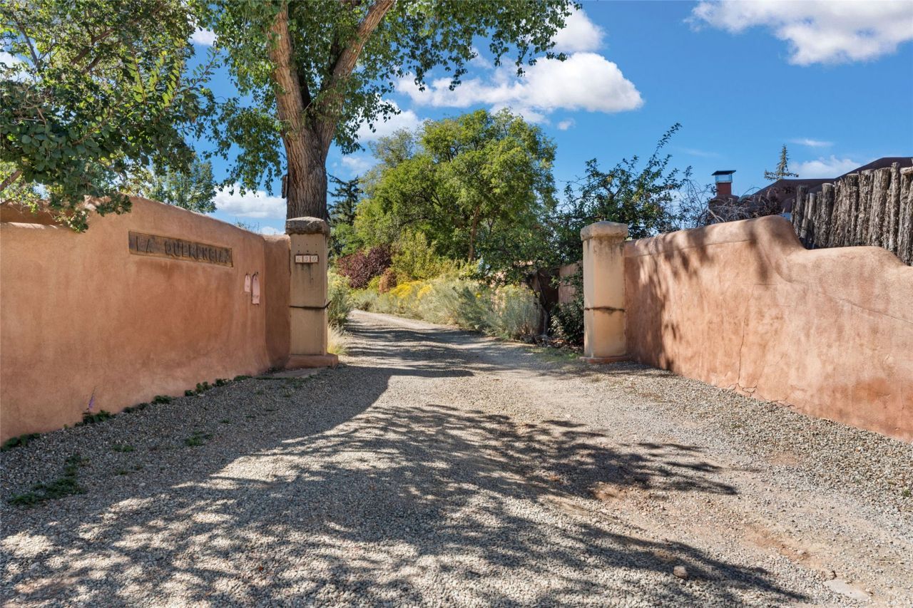 Envision the possibilities of this 3.27-acre estate, bridging iconic Canyon Road with the dirt stretch of East Alameda, directly beside the famed Compound Restaurant. This is a property of both heritage and horizon, anchored by a 3,829-square-foot historic residence on the Alameda side and a 4,424-square-foot commercial gallery on Canyon Road. Between these lies a hidden enclave of gardens, courtyards, and guest dwellings, including one designed by the celebrated Santa Fe builder Betty Stewart. The main residence, built in 1938 and recognized as a historically contributing building, has been lovingly preserved and enhanced by multiple generations of the same family. Within its adobe walls, you'll find four bedrooms, three full baths, an office, a laundry and craft room, a cedar-lined closet, and a sunroom, each space imbued with warmth & continuity of care. The Canyon Road gallery, leased through 2028, provides longevity and prestige in Santa Fe's most famous arts district. Throughout the grounds, mature trees and plantings and paths connect the various structures - serene, self-contained, and rich with character. The property enjoys full city utilities as well as two private wells, each yielding three acre-fee of water, an invaluable resource for maintaining the grounds or for future expansion. This extraordinary compound merges historic authenticity with modern versatility, one of the few remaining estates to unite Canyon Road and East Alameda in a single private holding. Whether envisioned as a multi-generational family retreat or a bespoke Eastside development, the site's dual access, exceptional size, and RC8AC zoning (allowing for 8 units per acre) make it a truly unique offering. Just moments from Santa Fe's galleries, dining, and cultural landmarks, yet profoundly secluded within its own walls and gardens, this property stands as both a legacy home and an expansive canvas for new possibilities in the heart of the city's most storied neighborhood.